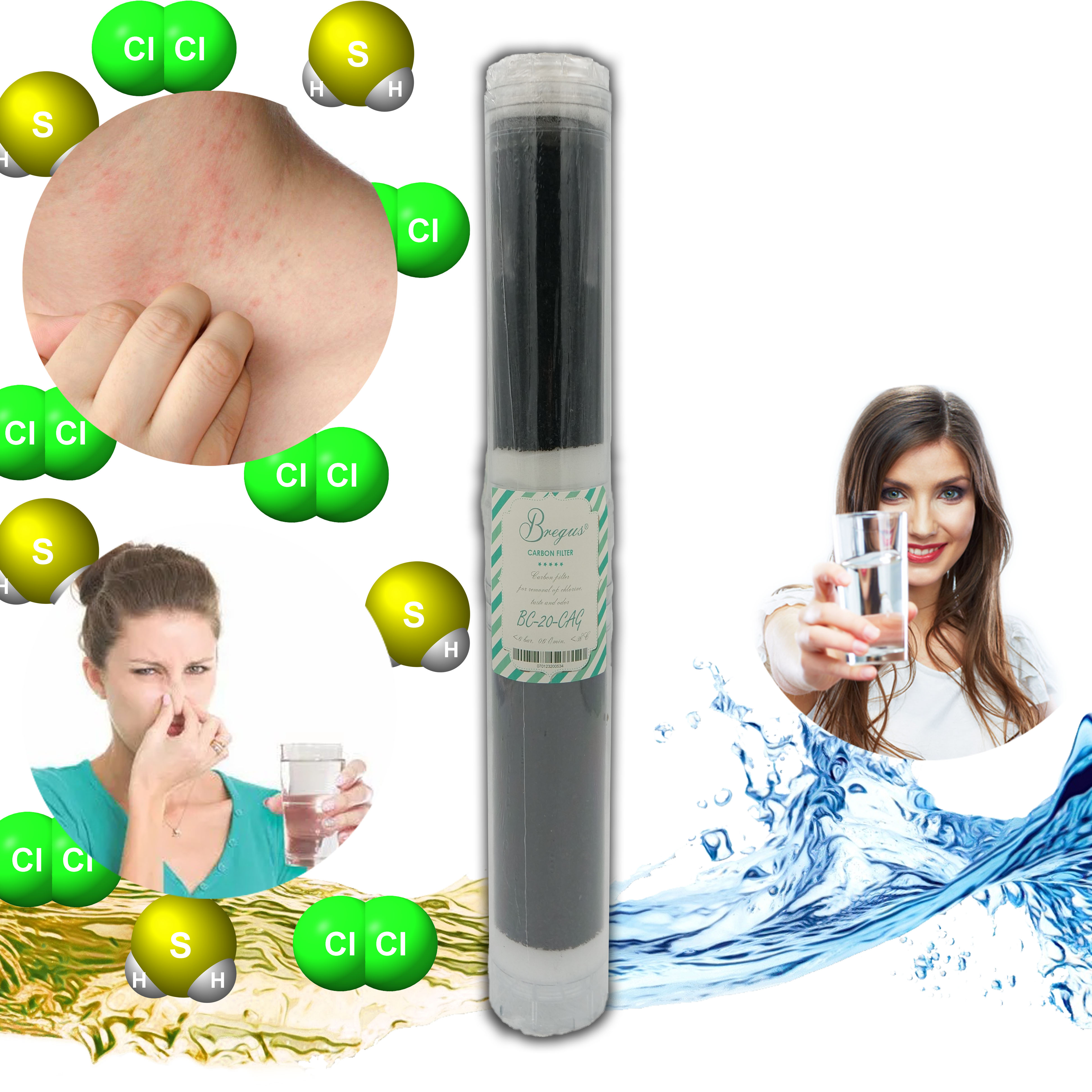 - 1 х картридж із гранульованим вугіллям Bregus 20” Slim